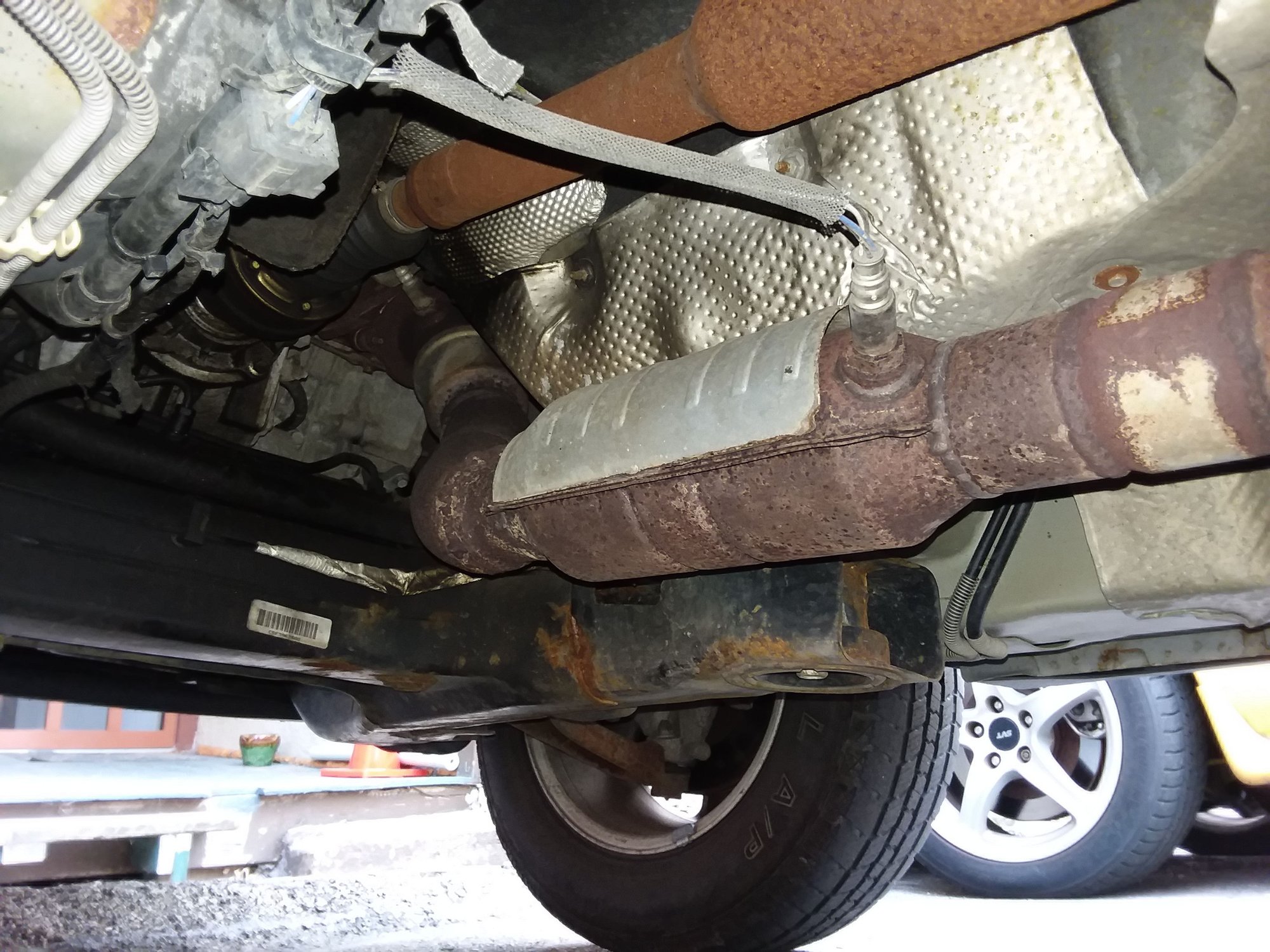 Hey thanks for the reply. See image of what's under there currently. Is this what you are saying. I was going to do this myself and had ordered the converter and pipe together. But the one I got the holes were not the same size and getting the bolts off proved too difficult. As much as I don't like it I went to my Mechanic and he said if I wanted I could bring him the parts and he would cut the old ones out and weld in the new. He suggested what to look for. He wanted the bung in the back end of the catalytic converter.