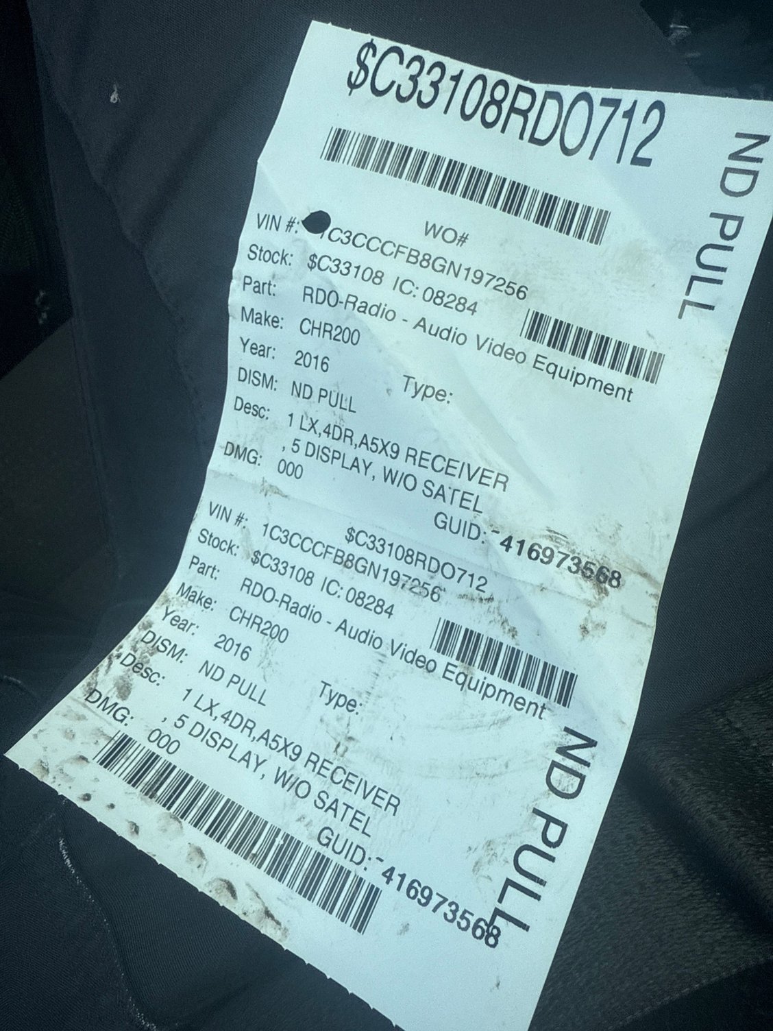 Hello! I replaced my 2016 Chrysler 200 radio with one from a junkyard and now need a antitheft code