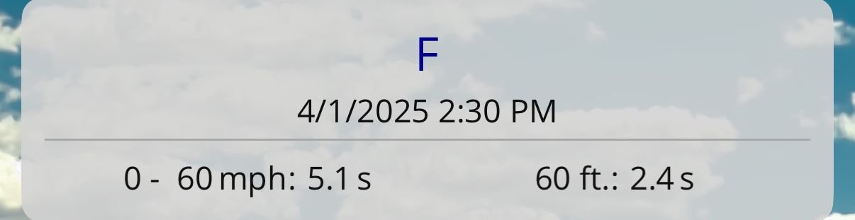 has anyone gotten a lower 0-60? Flat grade, e85, no passengers is all i can think to cut down this time, but tell me what yall think.