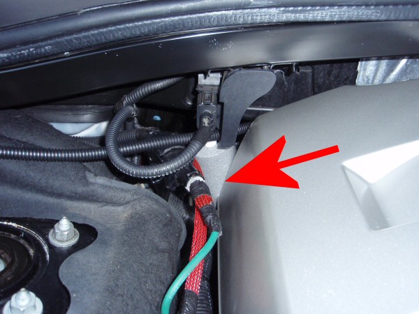 Arrow on attached photo shows point where cable contacts engine cover. Pipe insulation sleeve is in position on the vertical cable.