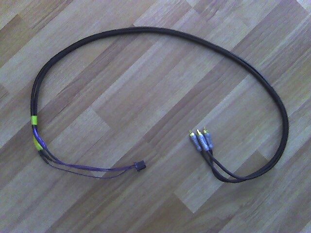 Not elegant, but effective. I used a monster A/V cable as it's top quality and nicely insulated. ok, I probably should have shorter leads out of the connector to help with shielding, but it works great none the less. Plugged it all in, fished all the wires into the console, and: