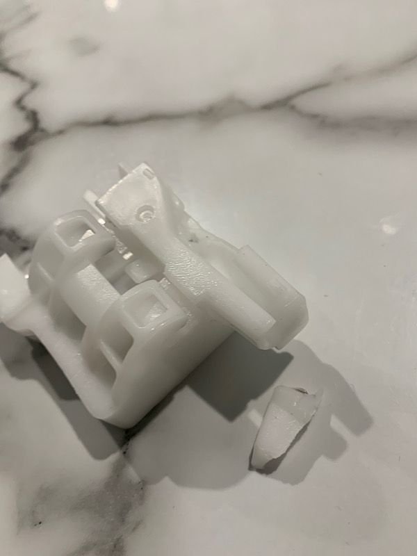 One of the glass plastic retainers snaps at the upper cable and the window drops. I have tried resetting the auto up but it is as if the window tries to go too high and adds extra stress onto the retainers.