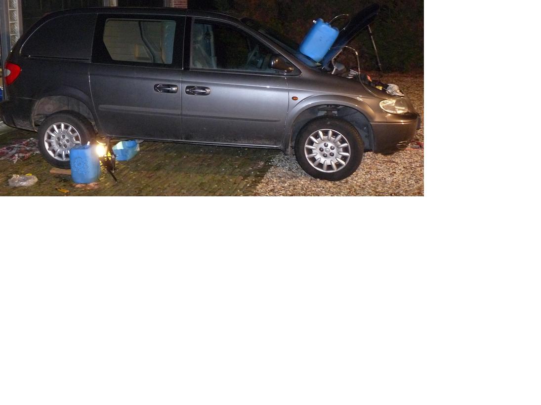 Next went back to the lift pump. This is connected with 2 fuel lines that go to the engine and 2 lines that go to the tank. Disconnected the suction line to the fuel tank (this has a slightly larger diameter than the retour line). Connected the pump with a second plastic tube that leads to a jerry can of diesel. I can now use my car to pump diesel from 1 jerrycan to another (see picture).