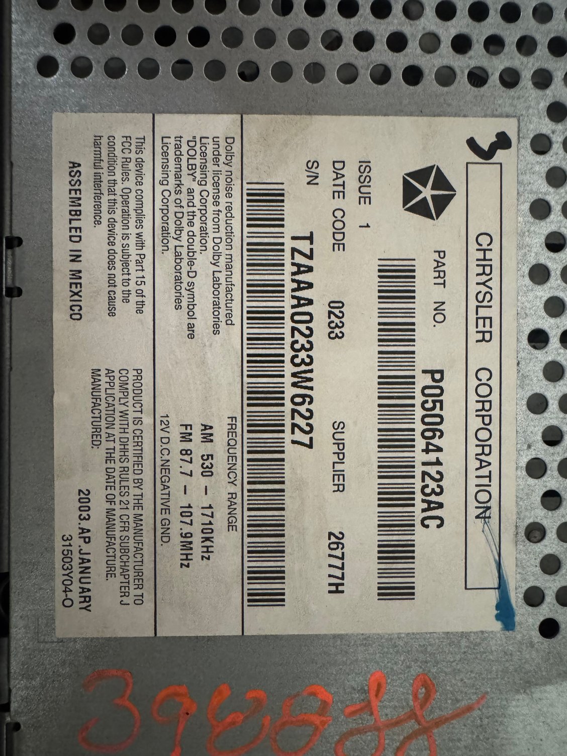 Can someone help retrieve the radio code for this vehicle? Thanks!