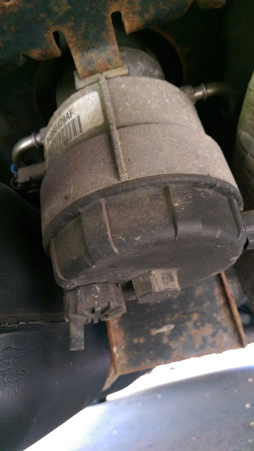 Just to make a note, mine is 2.8CRD 2005, and it does NOT have the front screw on filter, it's got the rear filter just in front of the rear axle.