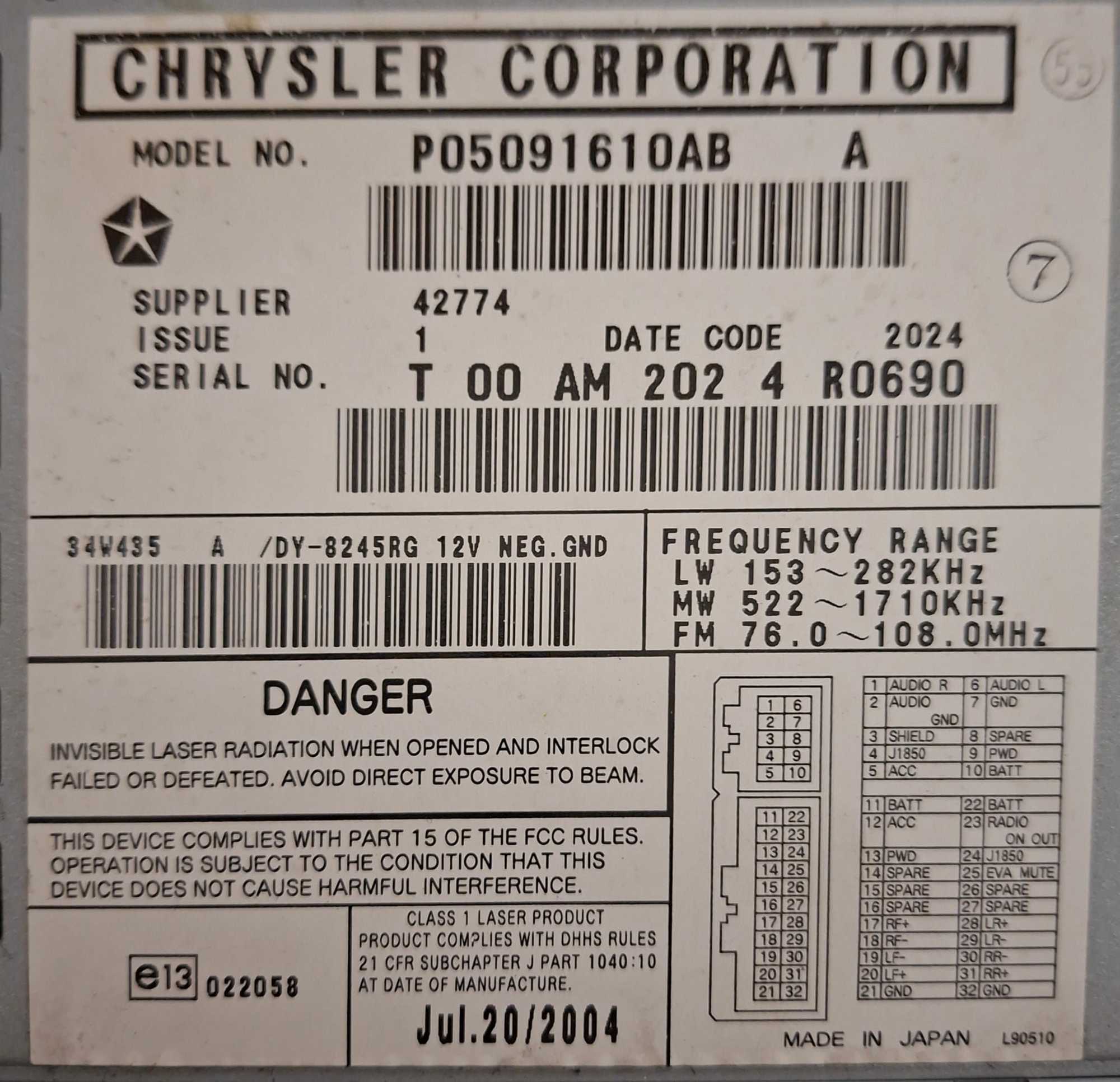 This is a photo of my car stereo's label. Thanks again