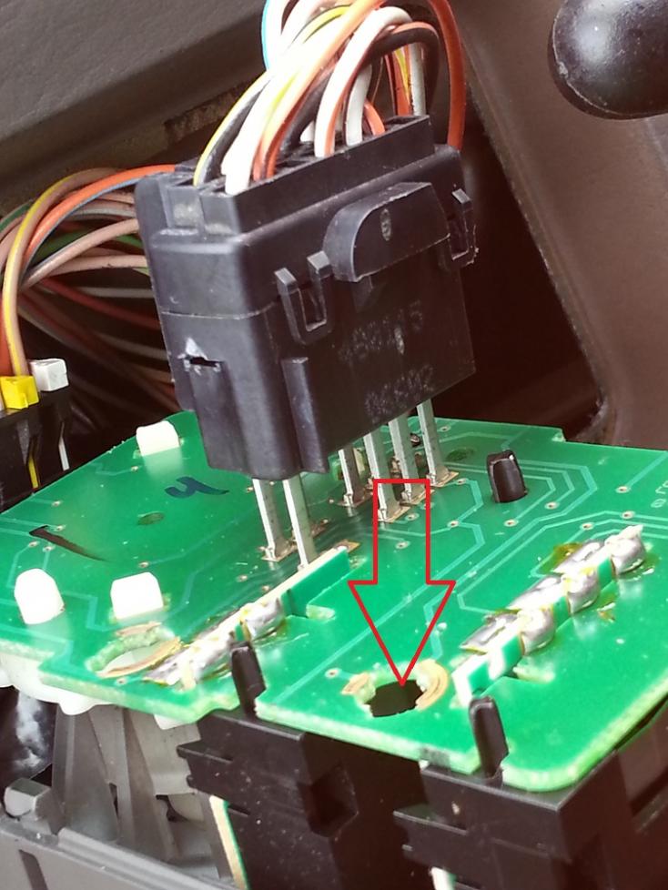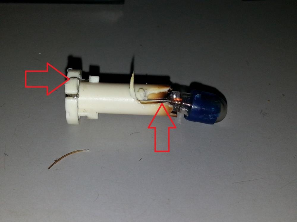1 of the backside of the light switch panel (arrow points to foot of bulb holder)