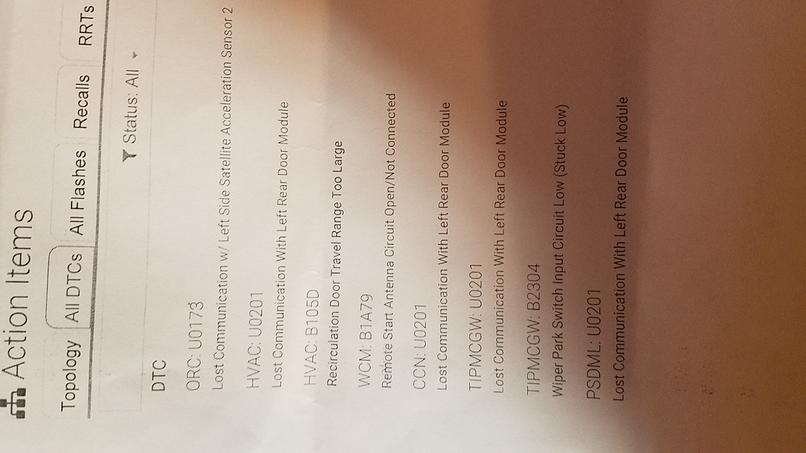 The scan did pull some codes, but nothing relating to the issue. A bad wiper motor code, air circ door code, and some relating to the power sliding door of which I have had the harness removed for over a year. All problems that were present before issues started. The only new one was wiper motor, but I suspect someone at the dealer turned on my wipers when they were frozen to the windshield. See attached report out from the scan. I've ordered a new harness and PCM today.