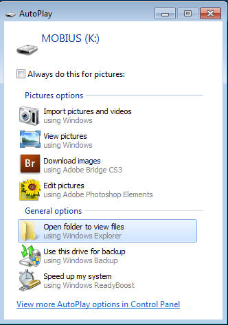 To vew images that you have recorded, connect the camera to your PC and within a few seconds you should see a Windows Autoplay Dialogue box similar to this: