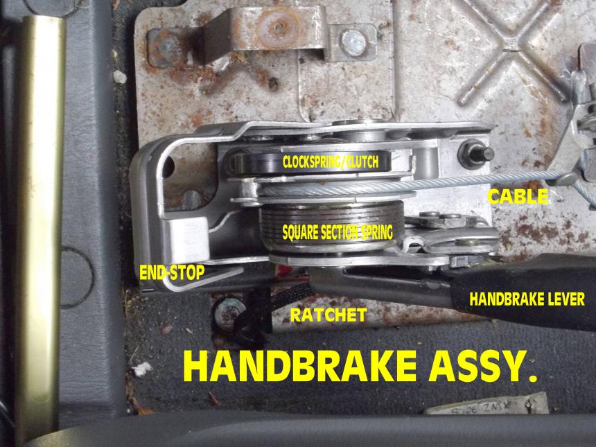 That’s why people shaped like humans like the popular wheelbarrows, and crowbars, they each have optimum leverage for a human shape. Is it a given that from your own pic [s] below that the fulcrum is as low as it can get. Is it a fulcrum / lever or is it a pull on ? I like yourself have long argued that the system stinks for a vehicle of this weight and should be changed, either a better handbrick system or much bigger / better shoe surface. I do wonder if reducing effort by extending the length of the lever will cause the clockspring to compensate to continue to do its job which is to protect the under-slung cables from over stretch. The first time you posted the pics below I did wonder if leaving the handbrick the same, disconnecting the clockspring, and using a miniature marine version of a multiplier pulley [turns your 5:1 into a 15:1, or your 9:1 into a 27:1] might be an interesting workaround ?