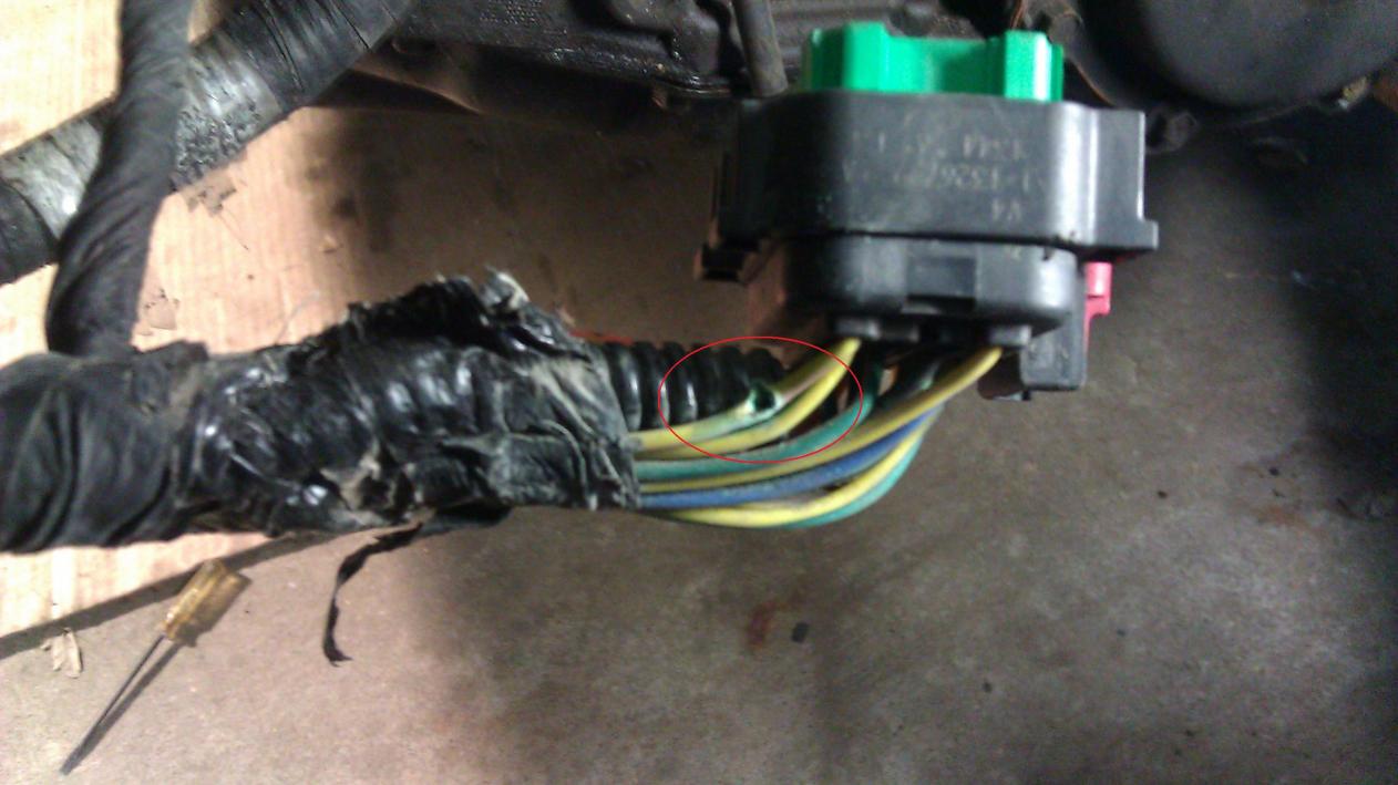 Didn't take long to find the opened wire (see pic). The wire was on the outside of the bundle and rubbed against an inside corner of the back cover of the connector. From the looks of the amount of corrosion when I stripped it back it must have been that way for some time. I just bought the vehicle and can't believe what some people just live with.