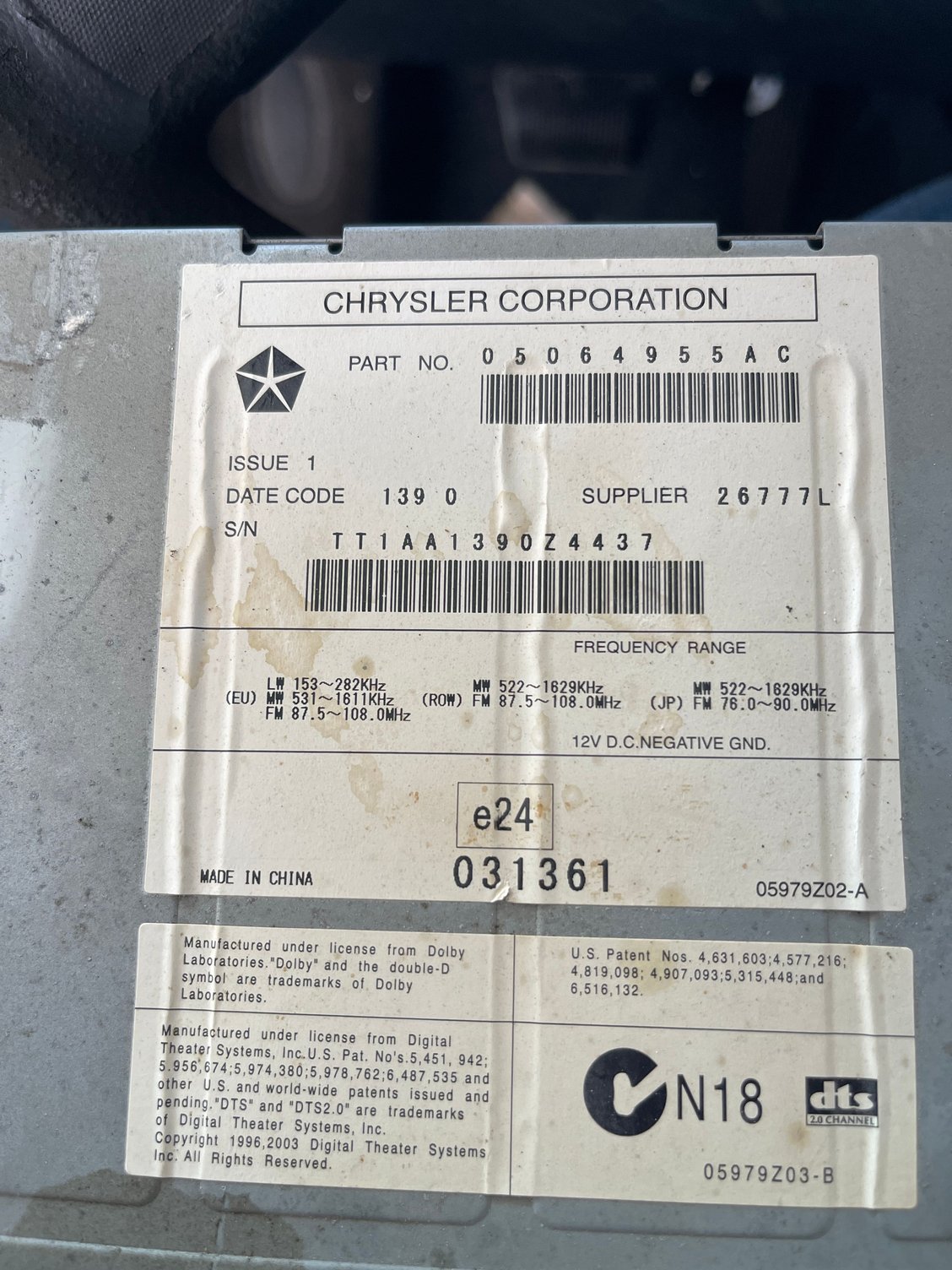 Hi, just got a second hand radio to replace the broken one in my 2013 Town & Country but need a code to activate it. Serial Number is: