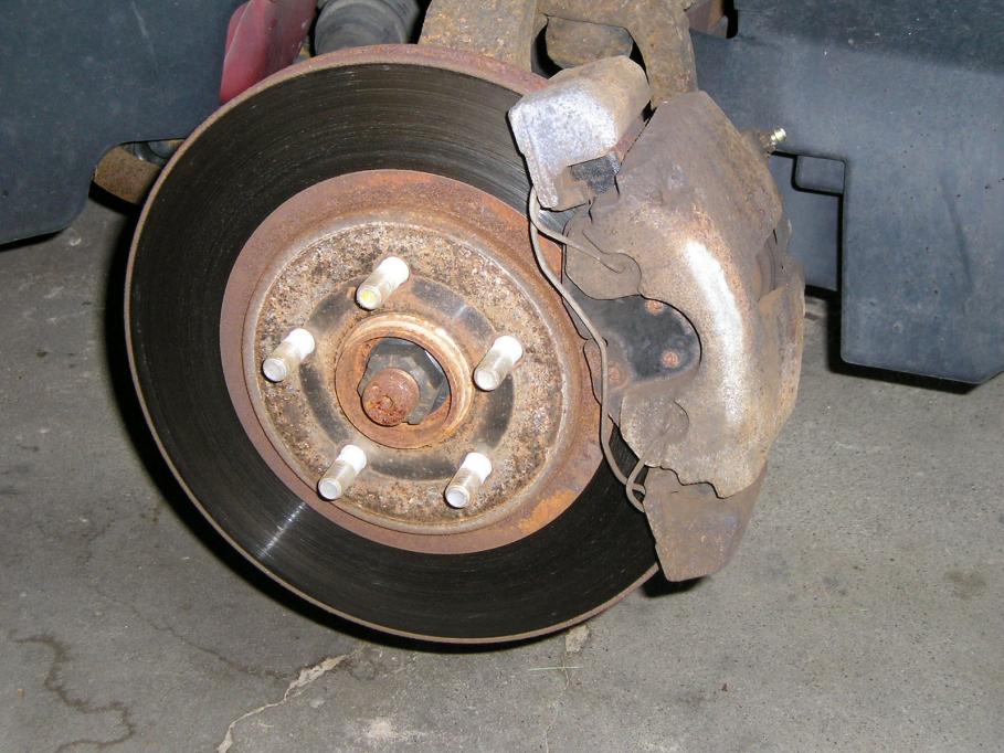 I decided to paint the calipers red and the mounting brackets aluminum and then clearcoat over both. The problem arises in preparing the surface for painting. I removed the brake pads and rotors and re-mounted the calipers to have a solid mount to work on. That also keeps the sliding pins covered and sealed against the onslaught of brake cleaner and sand.