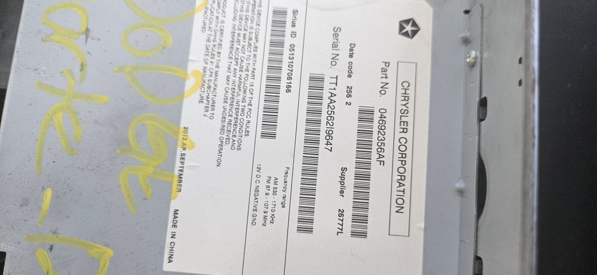Dodge Dart radio code, bought from ebay