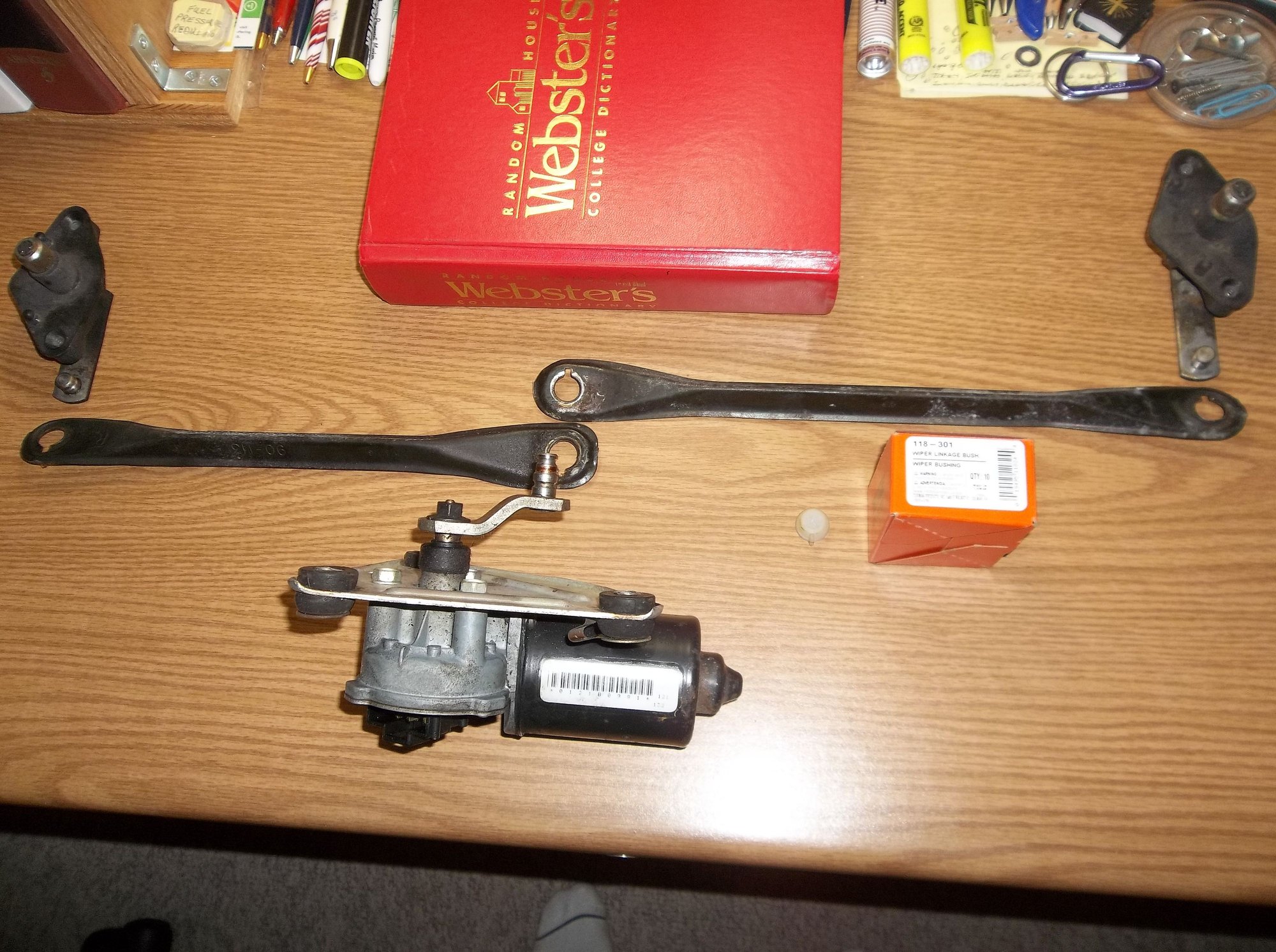 Sorry for how this turned out, I'm not a computer guy. Anyway, not sure how to install nylon (delrin?) linkage bushings. 1) Do I warm them up first so they'll snap onto the pegs easier, or just grease them up and push hard? 2) Do I cut out the closed end of the bushings or just push hard and let the closed end pop off? 3) Do I put bushings on linkage arms first, then snap onto the pegs? Or do I snap them onto the pegs first and then on to the linkage arms? 4) The peg on the wiper motor arm has a step diameter. Will the 118-301 bushing fit both diameters or do I need a different bushing for the larger diameter on the wiper motor peg? The car was given to me by a friend of a friend who wanted to get rid of it. The wiper linkage had fallen off so the wipers did not work. Motor works fine. It's just one item on a grocery list of things needed to get car road worthy again as it had been sitting for about 5 years.
