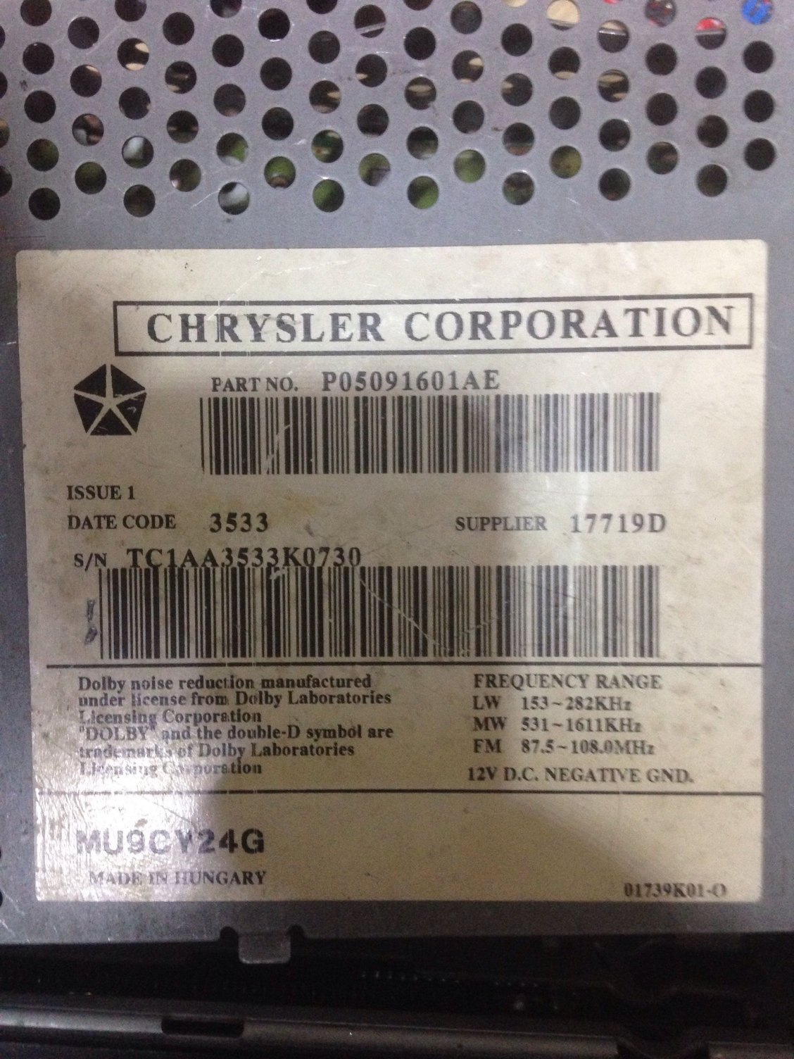 Chrysler radio code